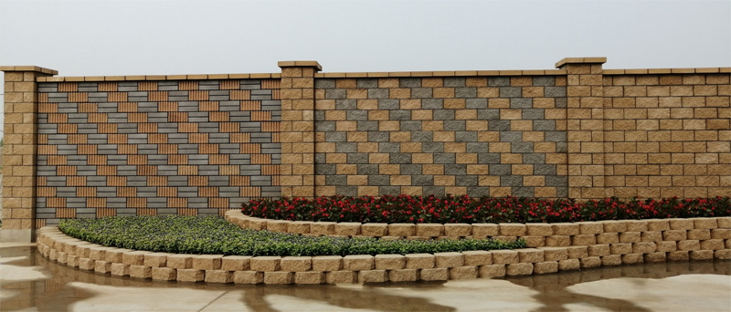 此產(chǎn)品不僅具有普通承重砌塊的優(yōu)良性能,而且具有與石材一樣的裝飾外表面,把承重和裝飾結(jié)為一體,在施工時(shí)建筑結(jié)構(gòu)同步完成。其裝飾效果可以通過(guò)單一品種或多種砌塊組砌、設(shè)計(jì)排磚方法、與其它裝飾材料配合應(yīng)用、適當(dāng)選用灰縫的顏色、以及改變局部墻體砌塊的凹凸程度等各種措施加以實(shí)現(xiàn)。裝飾砌塊不僅應(yīng)用于室外,也可以用于室內(nèi)墻面。其中,條紋面、劈裂面和磨光面效果,古樸、典雅、風(fēng)格前衛(wèi)。